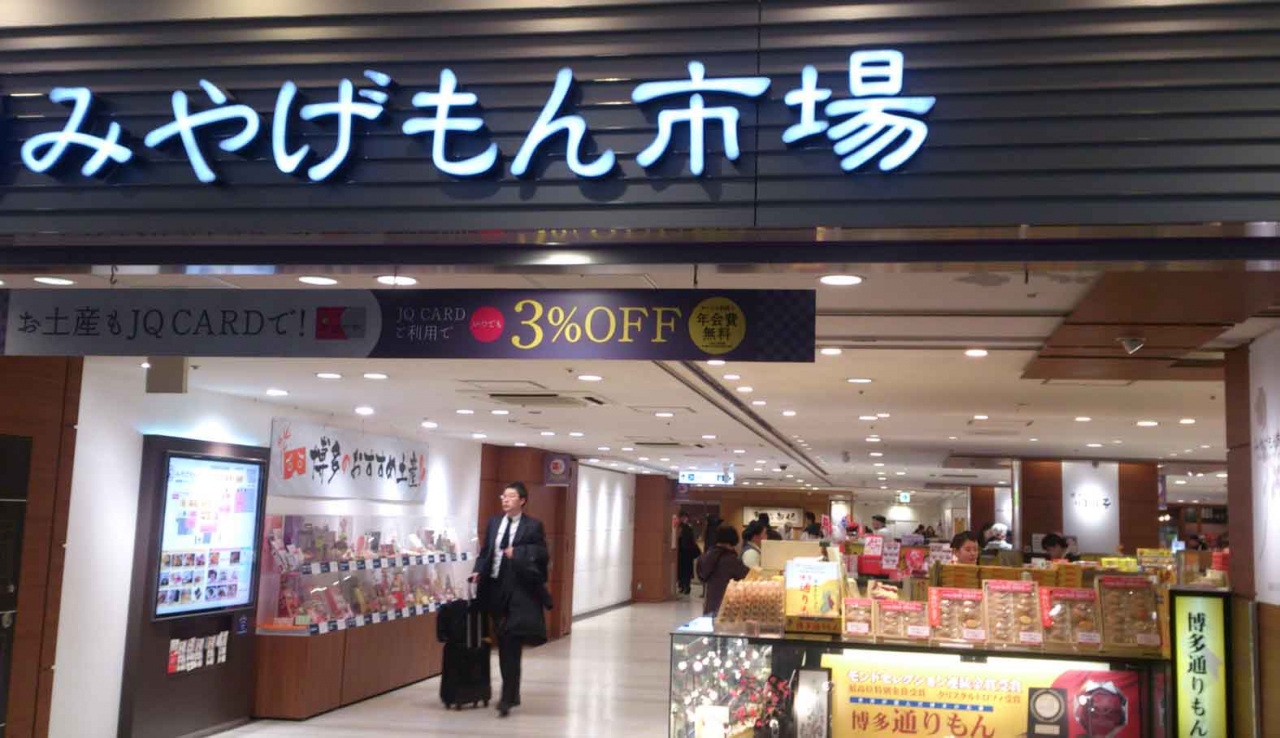 JR博多駅コンコース内のお土産ストリートになります。新幹線の改札にも近いので乗車前にお土産を物色するのに便利ですね。福屋・福太郎などメジャーな明太子屋さんやお菓子屋さんは一通りそろっています。施設自体も新しいですね。