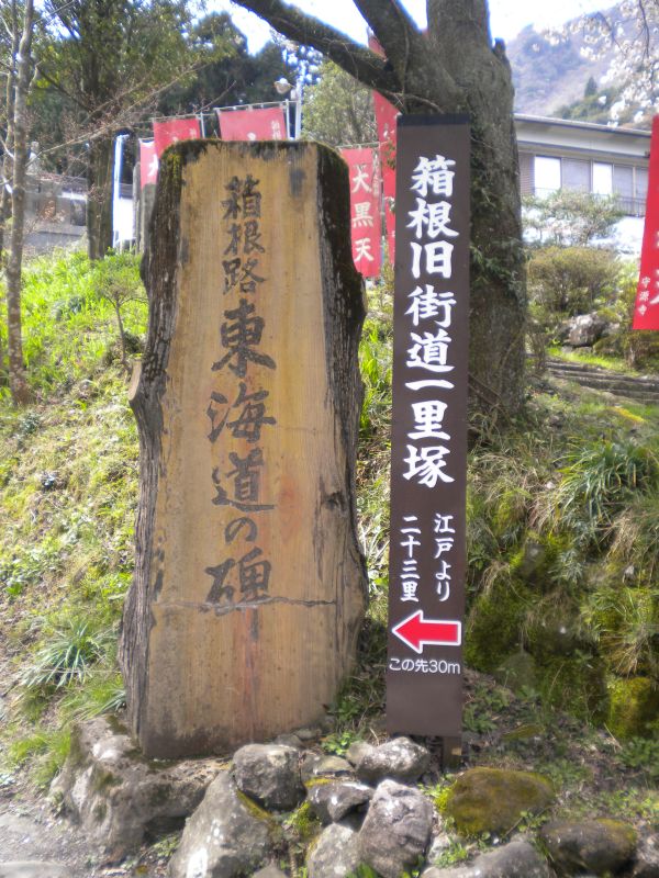 「箱根旧街道一里塚」の看板から石畳の上を数十メートル歩いたところにあります。