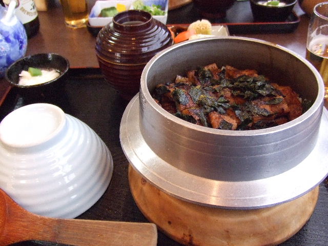 ひつまぶしならぬ、鰻釜飯の名店である。注文を受けてから作りだすので、テーブルについて、オーダーして空いていても最低20分の余裕は欲しいところ。以前は、来ていく服も躊躇するくらい(あまり綺麗でない)店だったが、リニューアルされて、とても綺麗な店になった。味は代代わりしたのか少し濃いめになったが、相変わらず、自家製の漬物も美味しく、並ぶ価値あり。