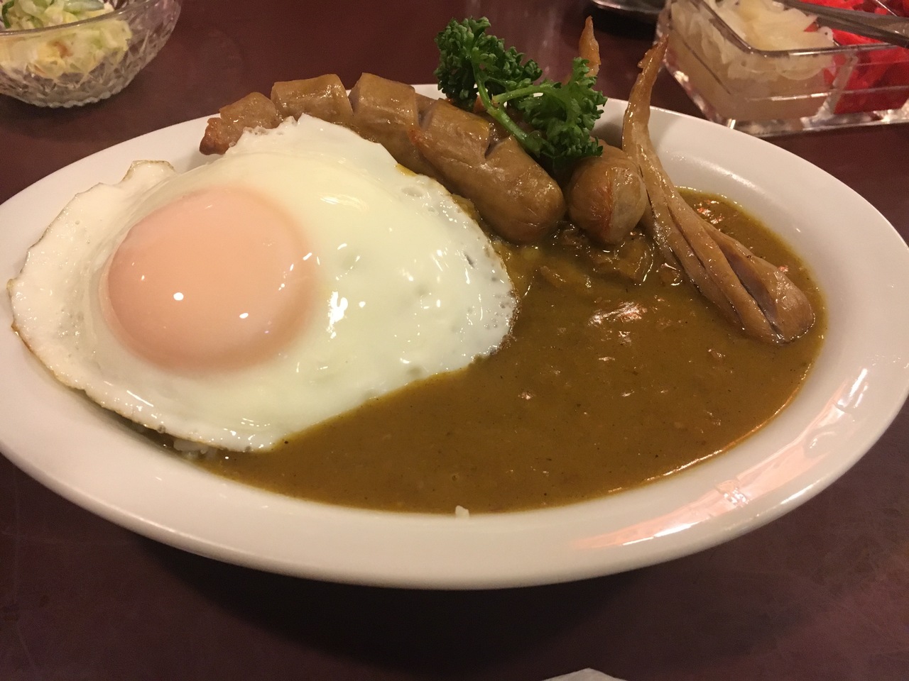 海軍カレーで有名な横須賀。ここがいわゆる海軍カレーなのかはわからないけれど、カレーの街、横須賀的な旗が出ている。入ってみると、雰囲気はこじんまりしたスナックをカレーやさんに改装した感じ。味的には特に、おー!といううなものはないけれど、カレーってそれでいいよね、とそんな感想でした。