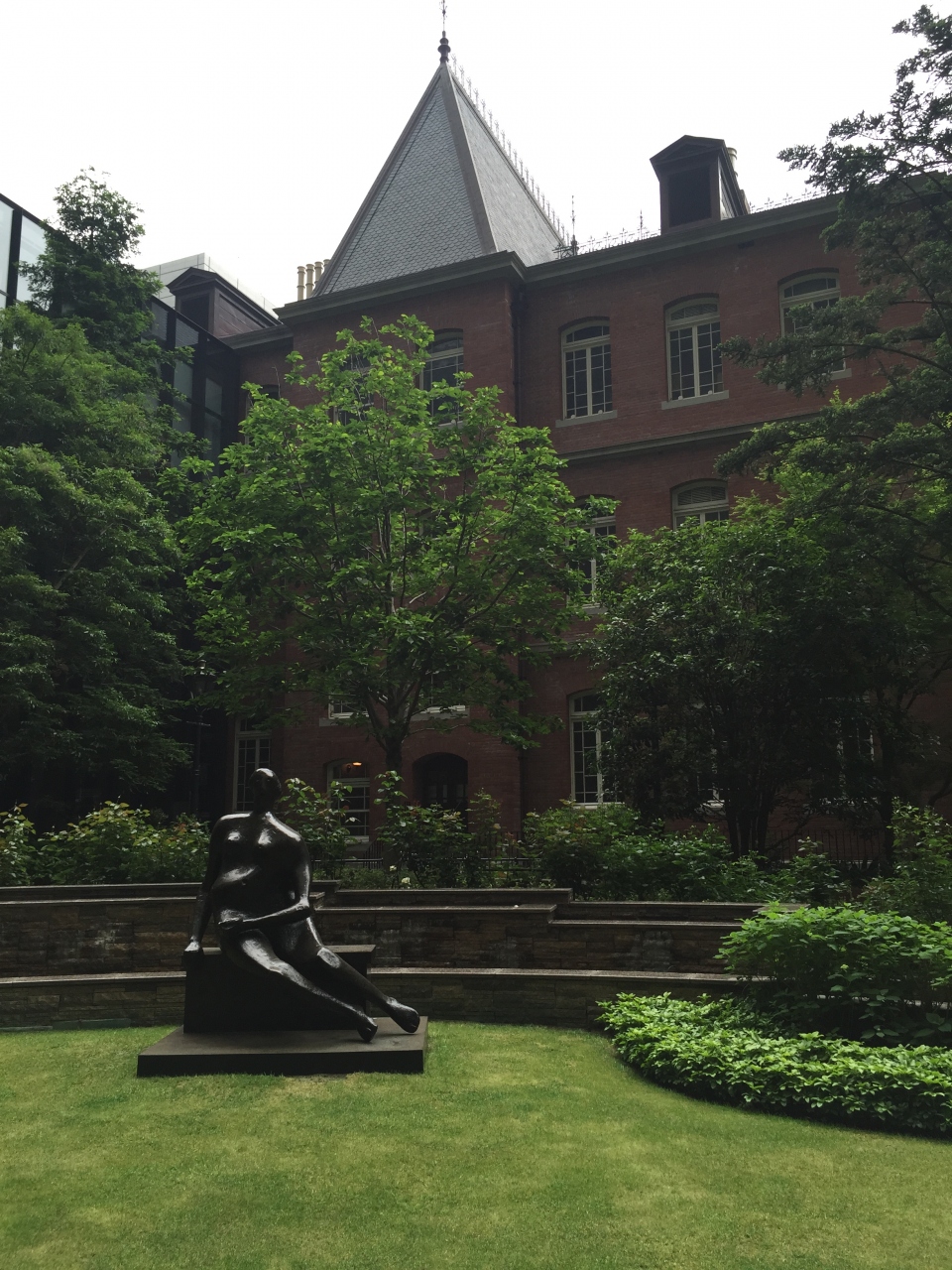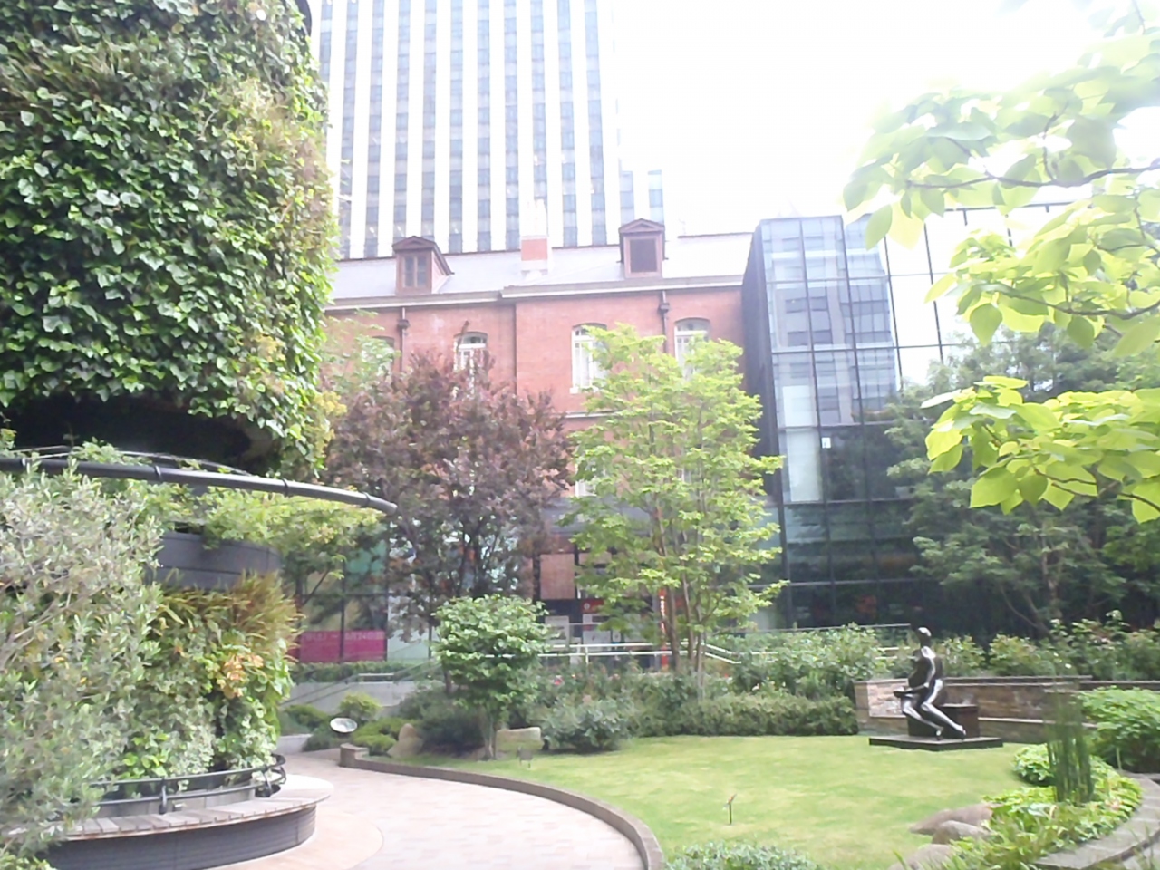 JR東京駅赤れんが駅舎の丸の内南口を出て徒歩約5分丸の内仲通と大名小路の間に建つ三菱商事などのオフィスとグルメレストランなどが入る複合商業ビルとレンガ造りの美術館、間には四季折々の草花が楽しめる憩いの中庭があるビジネスにもショッピングにもたいへんおすすめのスポットです。