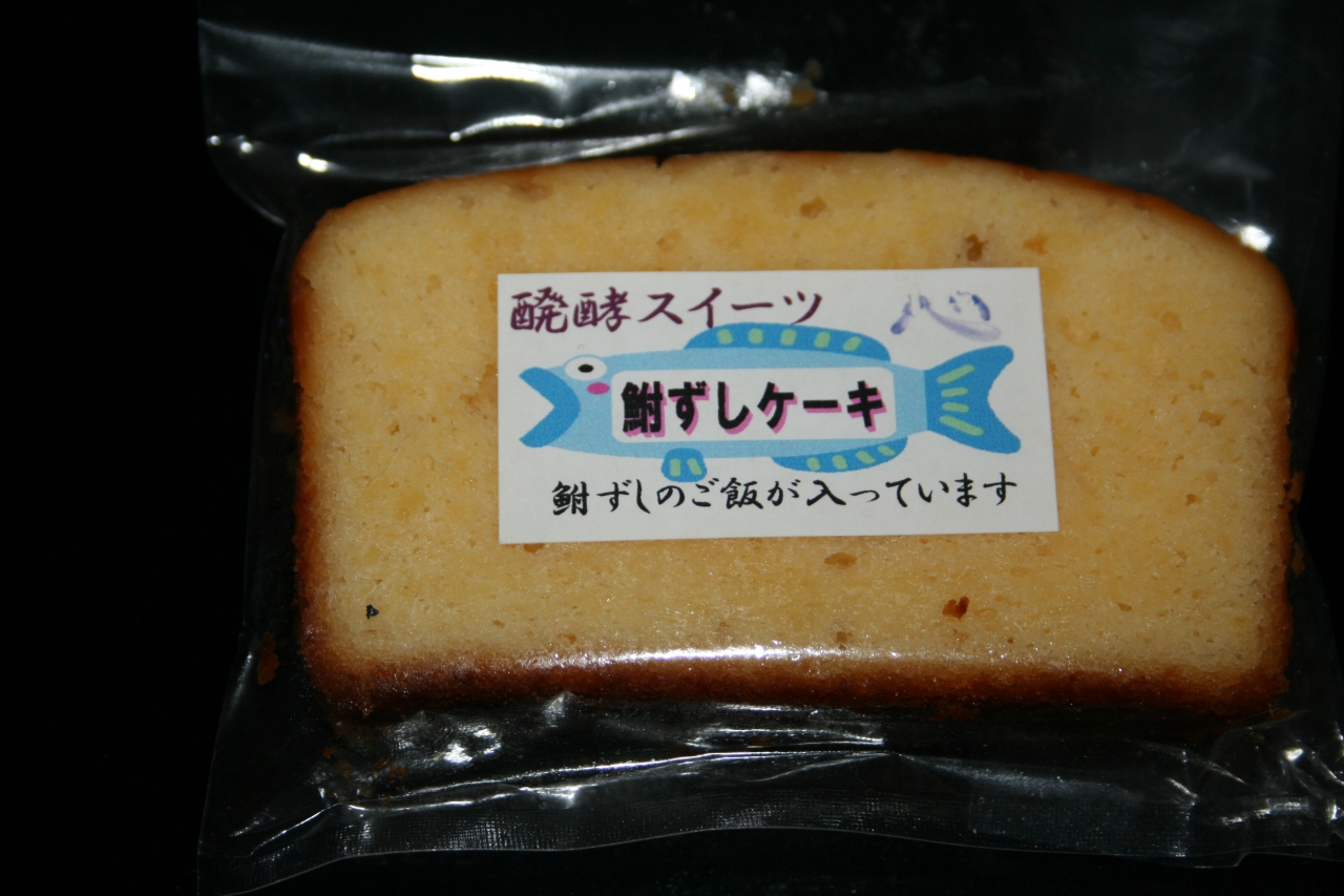 鮒ずしの発酵したご飯を生地に練りこんで焼き上げたパウンドケーキです。