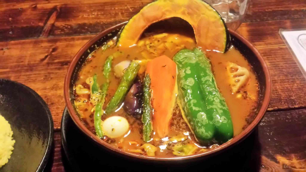 メニューは野菜カレー1,000円とチキンカレー1,100円が人気。スープの大盛りとライスの大盛りは無料です。