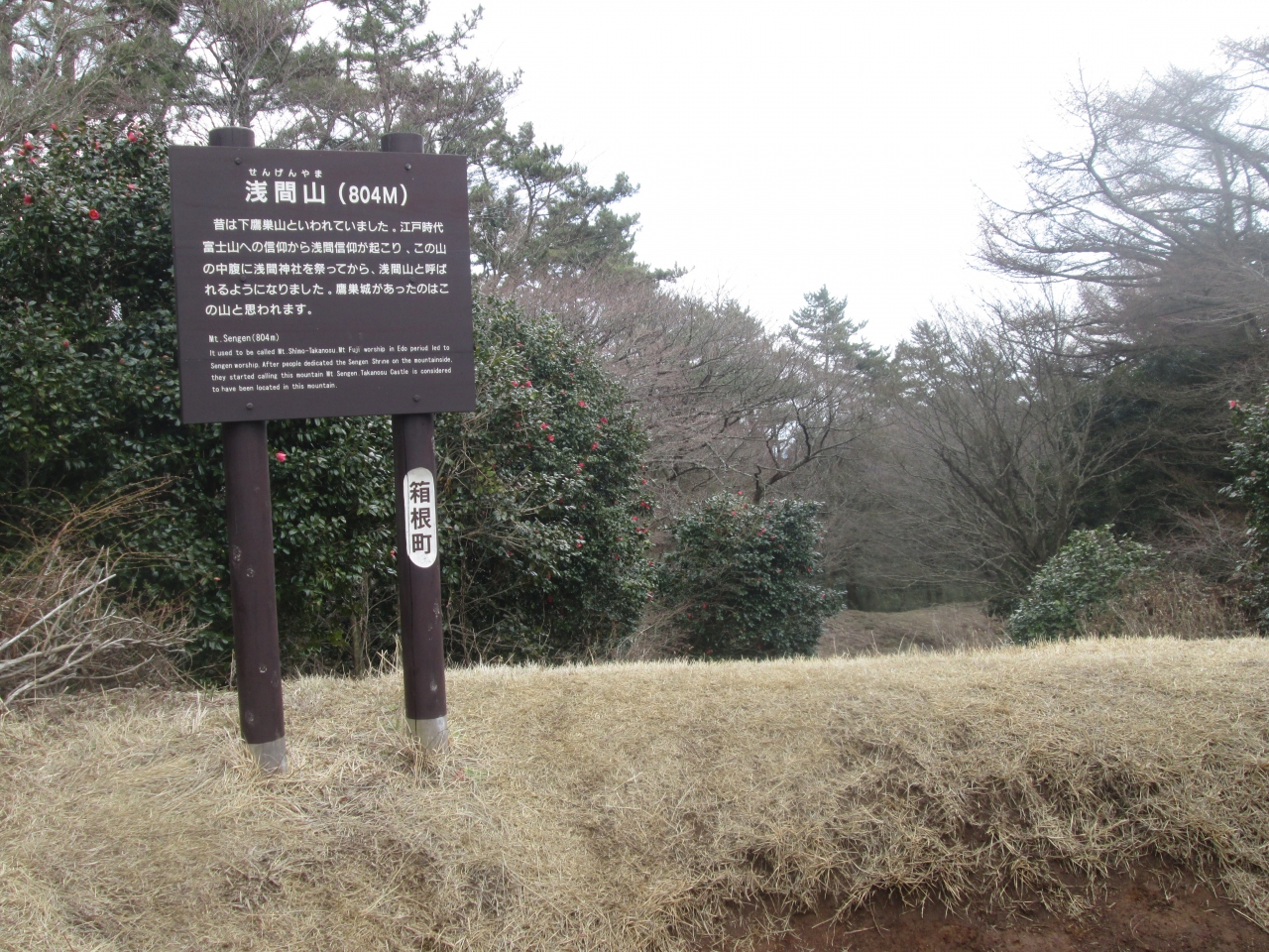小涌谷から千条の滝を見て浅間山に登りました、標高802.2mの山で三角点があります、芦之湯から鷹巣山に登って湯坂山を歩いて湯本に抜ける湯坂路沿いにある山で、伝統ある箱根のハイキングコースのひとつです、頂上付近は広い草地になっていてのんびりできます。