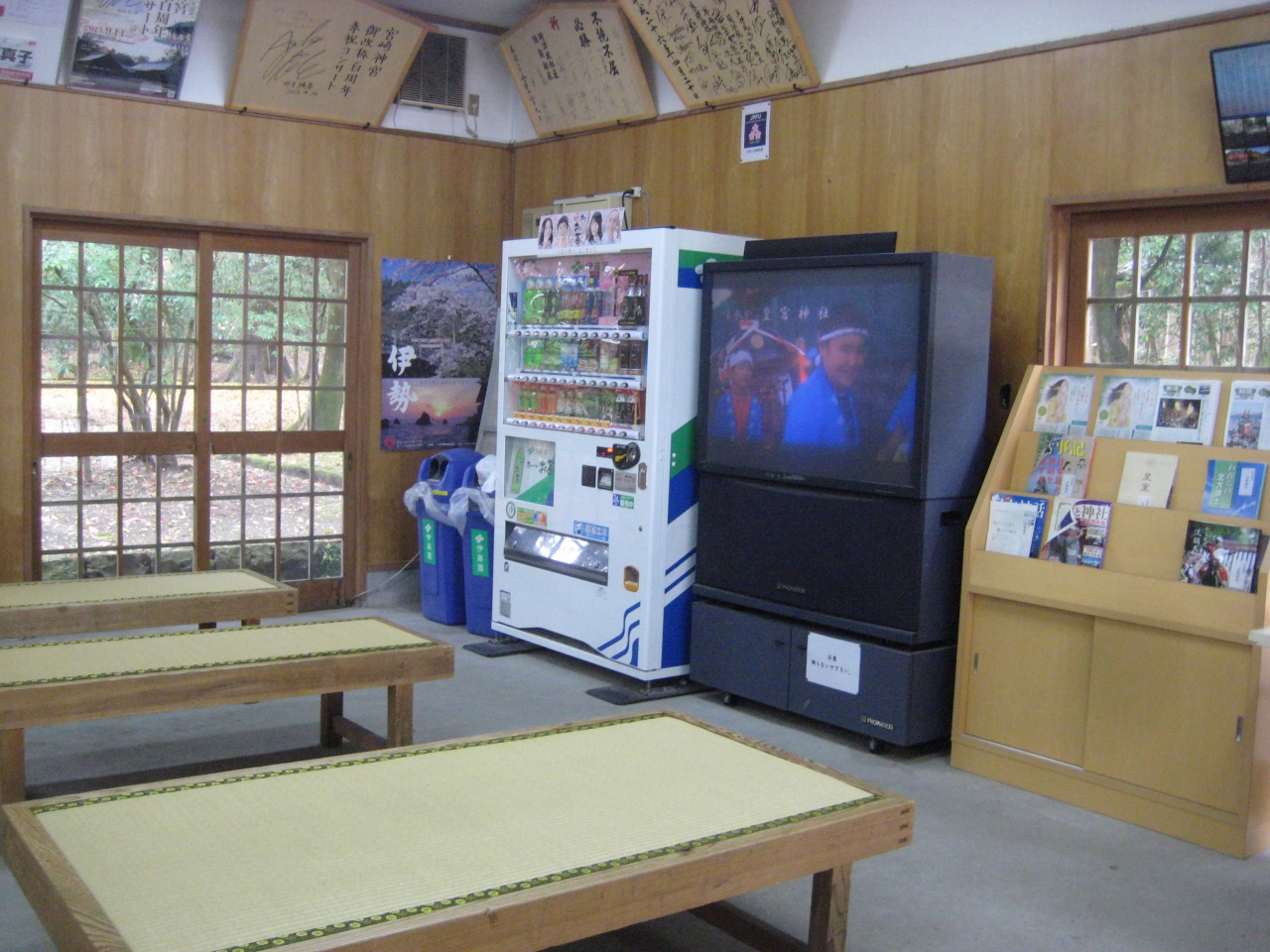 宮崎神宮駅を出ると目の前に大鳥居があった。その参道を進んでいくがひたすら左右は樹木で覆われていた。本殿も周りは樹木で覆われていて都会のざわついた感じはなく、静かな雰囲気で落ち着けた。いすとテーブル、TVのある休憩所もあり、ゆっくりと見て回ることができた。