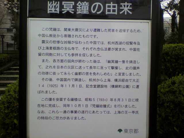 関東大震災により犠牲となった方の追悼するために、中国仏教徒から寄贈されたものなんだそうです。
