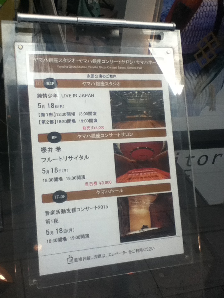 地下鉄銀座駅の南西、中央通り沿いのヤマハ銀座ビル内にあるホール。久しぶりに来た。1953年、2層524席のホールとしてオープンした。2006年ヤマハ銀座ビルの老朽化などのため一時閉館したが、2010年に「アコースティック楽器に最適なコンサートホール」としてリニューアルオープンした。客席数は1、2階合わせて333席である。プロダクトデザイナーの川上元美による専用の椅子は座り心地がよく、楽しく鑑賞できる。好きな作品の講演がある時に訪問するのもいいかもしれない。