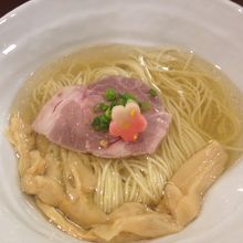 「鯛塩そば」というちょっと珍しいネーミングのラーメンは、細いながらもコシのある麺に、鯛の出汁と思われるさっぱり塩味のスープ、具はチャーシュー以外ほとんど乗っていないというシンプルなもの。