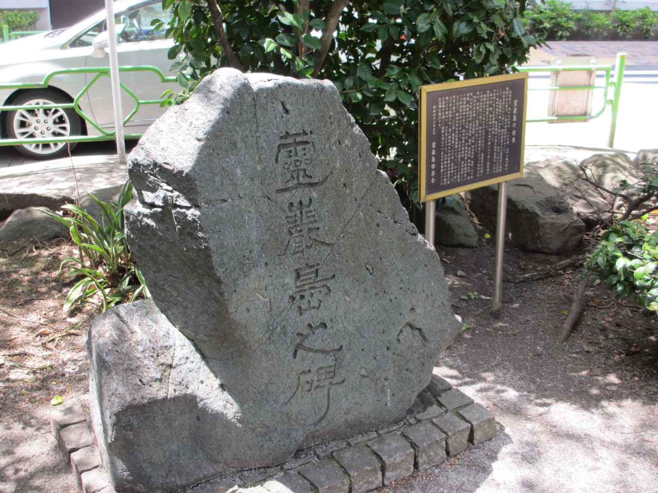 江戸時代の初め、この辺りは沼地で、土地を開発するために霊厳上人が霊厳寺を建てました。その後、昭和に入り町名から霊厳島の名も消えてしまいました。江戸時代からの歴史を象徴する遺跡も消えていくことを憂い、建てられた記念碑です。