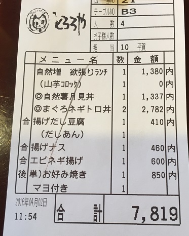 ランチが何種類かあってとてもおいしそう。待っている間にメニューを見て決めていたけれど席に通されてちゃんとしたメニューを見ると他にも美味しそうなお料理がいっぱいなので、ランチセットにしないで単品をシェアしてみました。揚げ出し豆腐(410円)揚げナス(460円)エビねぎ揚げ(600円)お好み焼き(850円)どのお料理もできたてアツアツで運ばれ、とても美味しくいただきました。