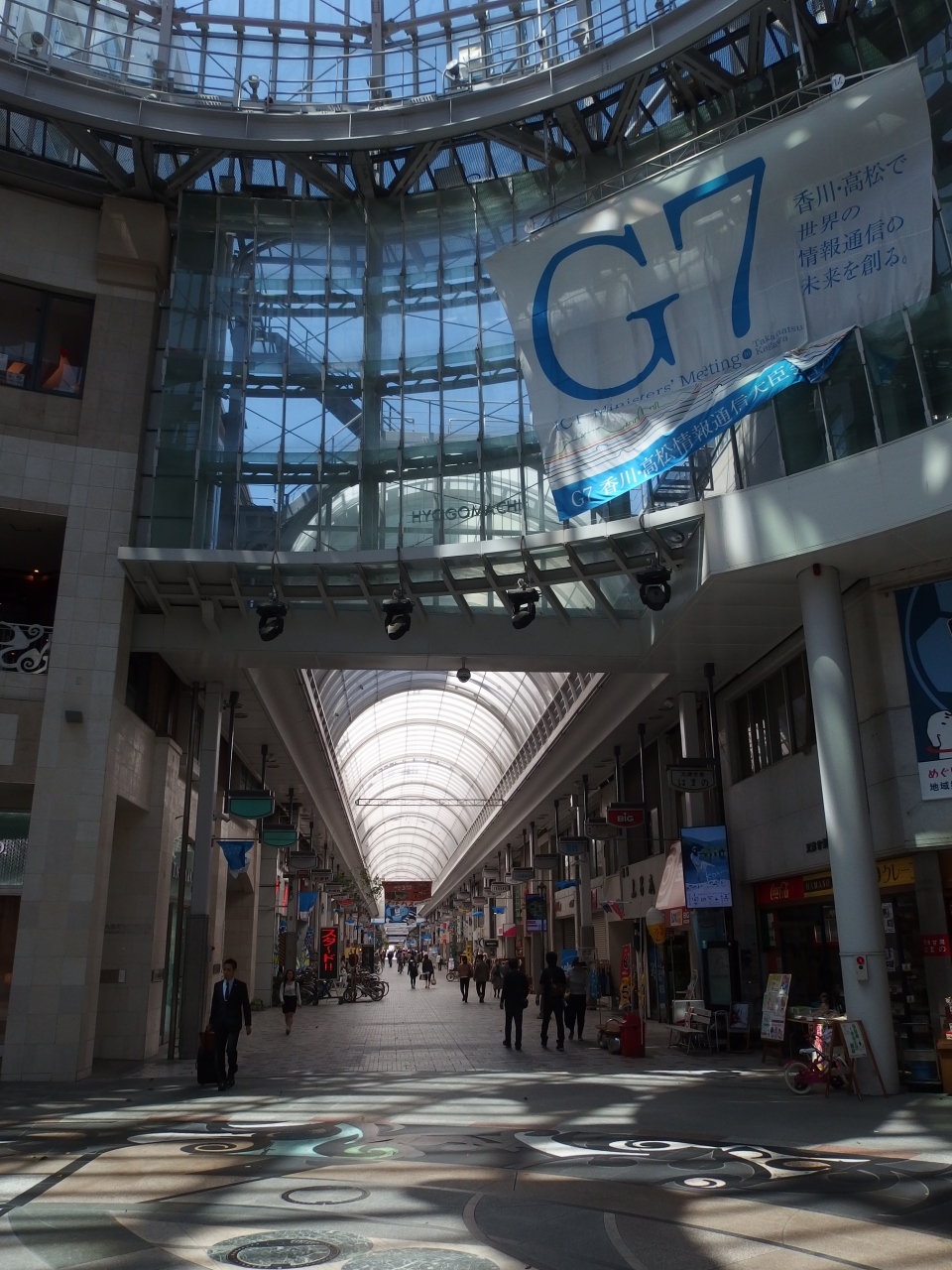 高松市中心部、高松港から南下する国道30号中央通りの東西にそれぞれ200mづつ続いているアーケード街です。東端は、丸亀町通りでその先はそのまま片原町商店街のアーケードにつながっています。商店だけでなく銀行やビジネスホテルなども多くオフィス街にもなっています。