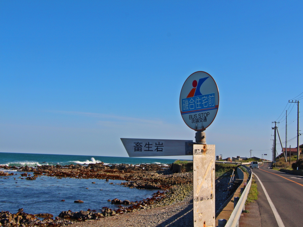 海岸沿いにバス停はありますが、茨城交通のホームページによると運行は1日1本のみです。