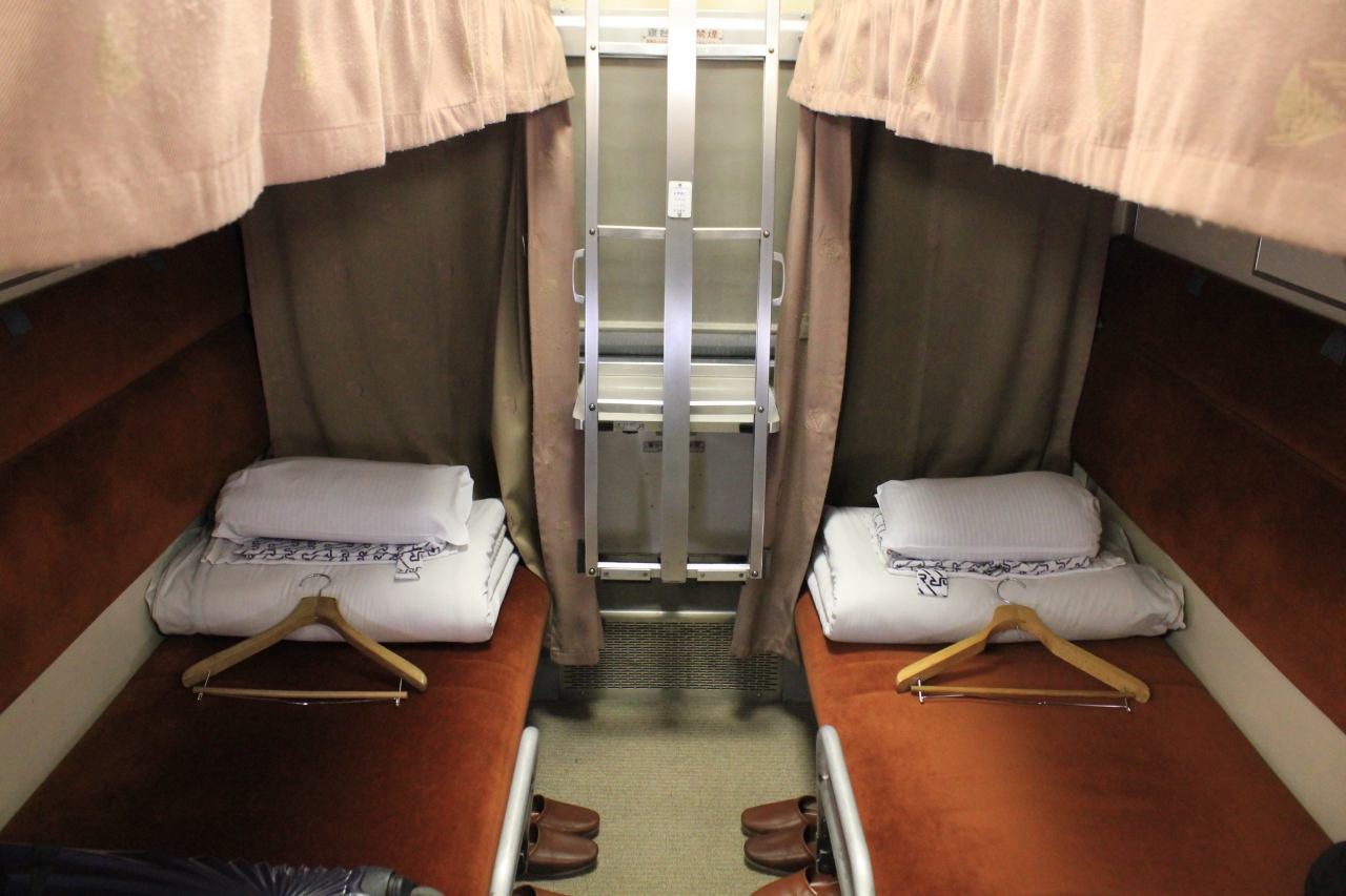 行きに利用した「北斗星」と比較しても個室とカーテン仕切りの違いくらいで、車両の老朽化は同じくらい、寝台の寝心地は変わりないと感じました。