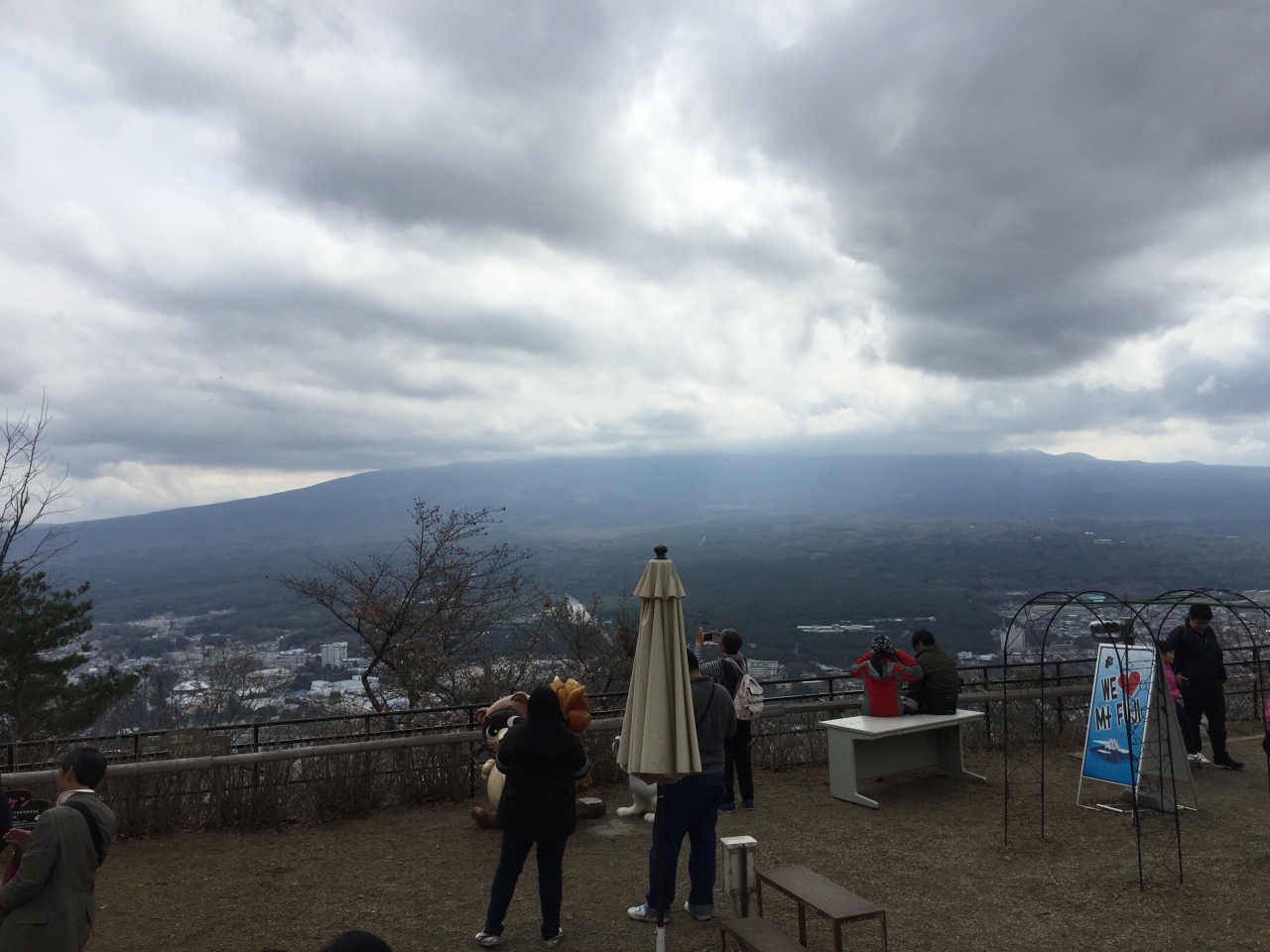河口湖畔にある天上山(カチカチ山)のロープウェイです。外国人には人気の施設のようで乗るのに30分ほど行列。車内からは河口湖やその周りの山々の雄大な景色が楽しめました。もし晴れていれば富士山の景色がキレイに見えるそうです。