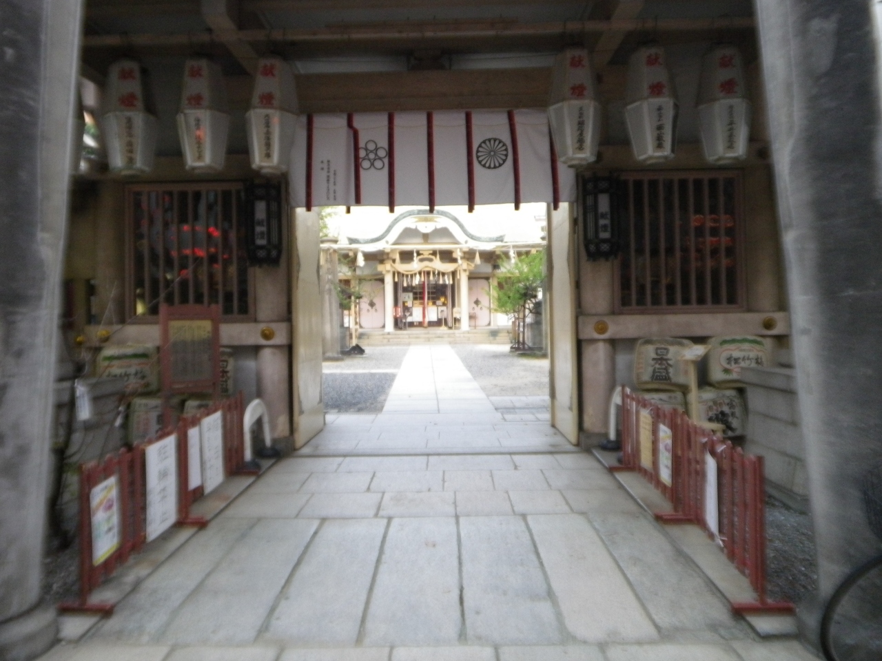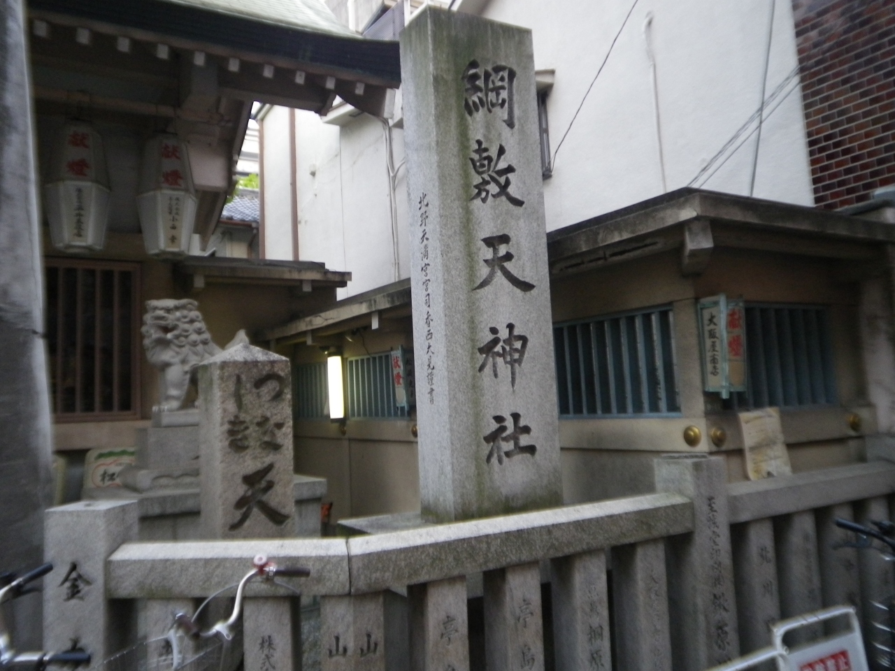 菅原道真が大宰府に向かう際、この地に立ちより梅を眺めるために、、船の艫綱(ともづな)をたぐりよせ、即席の座席としたことが「綱敷」の名の由来だそうな。船の艫綱というからには、近くに川がながれていたのだろうか。今は歓楽街となっている。