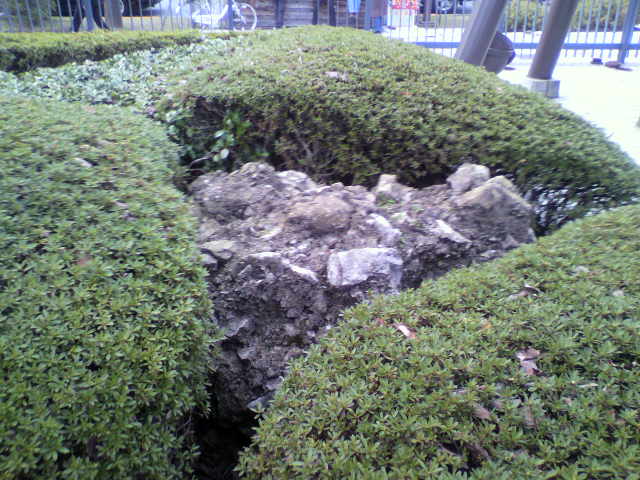 あちこちの神社仏閣などをお散歩していると、さざれ石に出会うことが多いですが、ここ、両国国技館の敷地内にもありました!さざれ石。