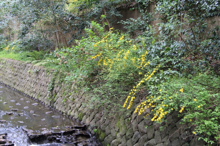 山吹以外花らしい花は咲いていませんでしたが、等々力不動尊まで行けばお花見が出来ます。