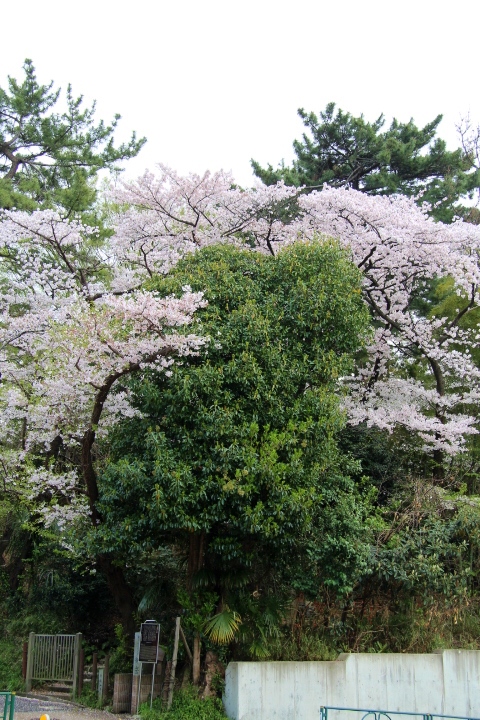 等々力不動尊の山門の対面にある御嶽山古墳の上にも数本の桜の木があり綺麗に咲いていました。以前見た時は鬱蒼とした森の様で桜の木があることに気付きませんでした。
