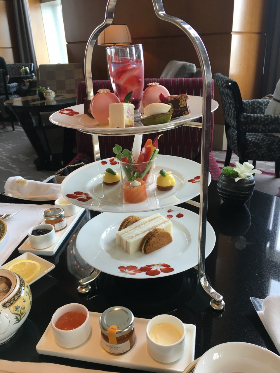 デザート、オードブル、サンドイッチが1段ずつ。その後スコーンが来ます。