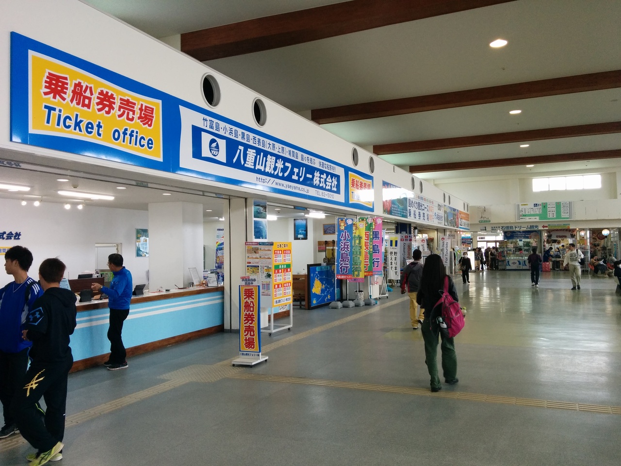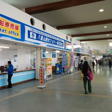 またターミナル内は広く、各船会社の平田観光、安栄観光などのデスク窓口があります。