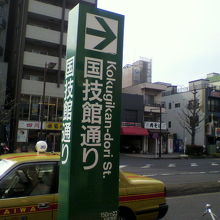 両国にある回向院の正面から両国駅を抜けて、国技館の前までのびている通りが「国技館通り」です。