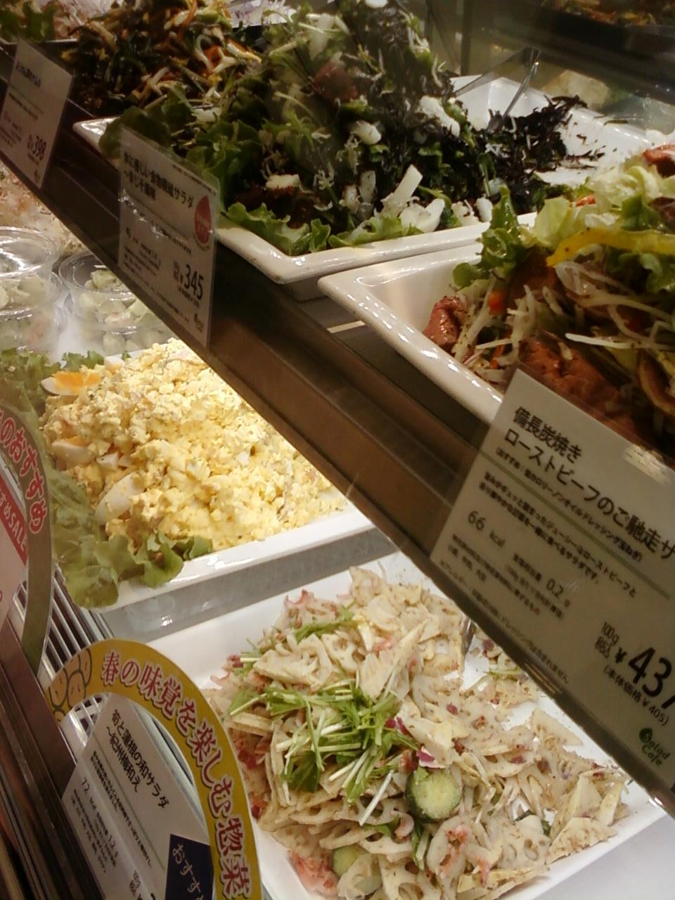 ここのサラダカフェさんは、新宿駅構内に連結している、小田急百貨店の地下、食品フロアにあります。オリジナリティーあふれるサラダがたくさん並んでいます。なかなか手に入れられない食材はもちろんのこと、いろいろなアレンジが普段のお料理の参考になります。毎週ここで買い物したいくらいです。