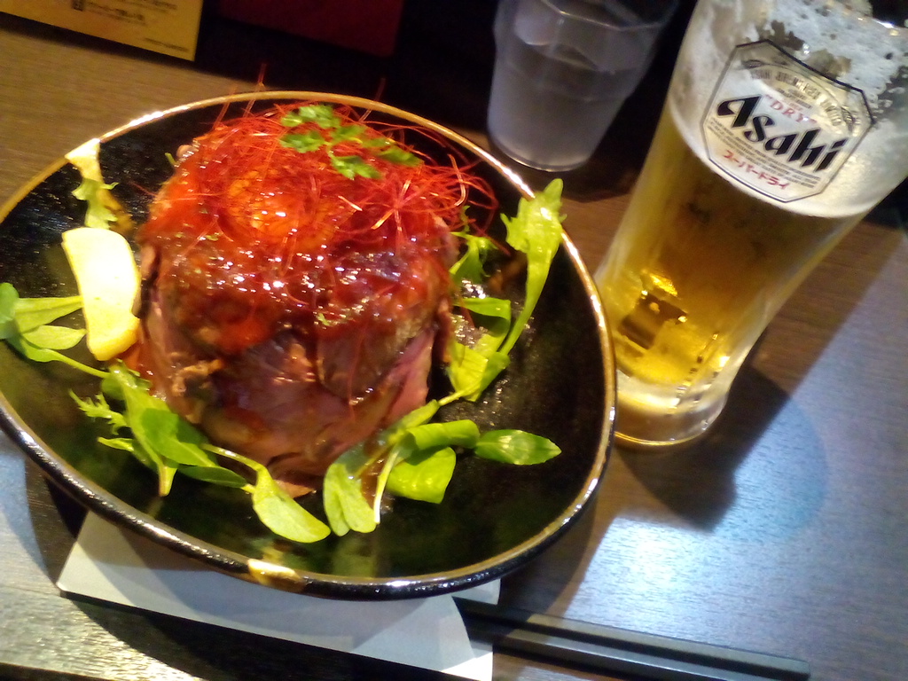 ローストビーフ丼というよりも、ローストビーフタワーな感じ。