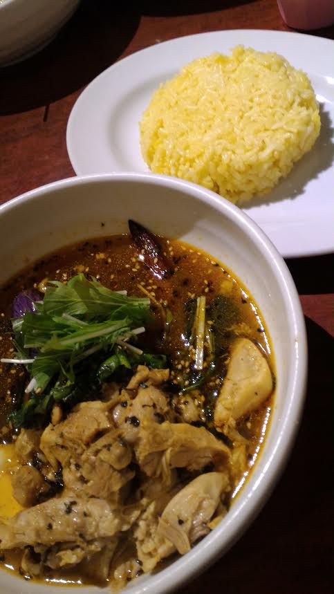 お店が地下にあってちょっと薄暗いです。スープカレーの辛さが思ったより辛くなかったのでもっと辛くすれば良かったです。スープはとてもサラサラで香辛料と思われるツブが入っています。オープン時間とともにたくさnお客さんが来ました。