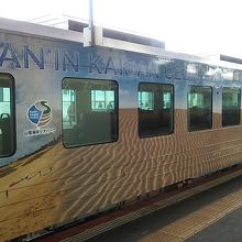 「山陰海岸ジオパーク」というラッピング車両で運転する場合があります