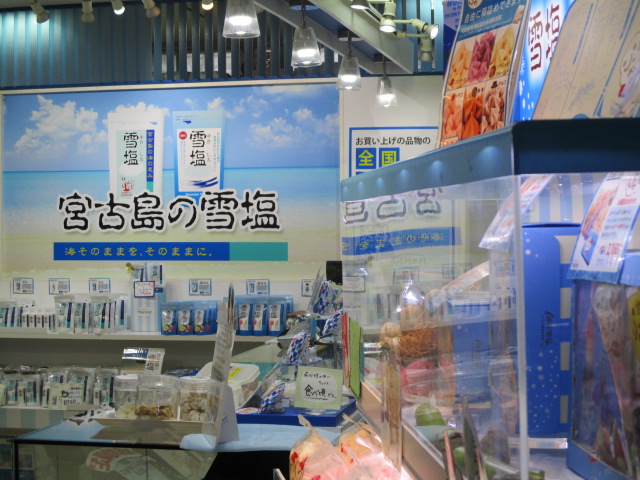 宮古島空港2階には土産物店が並んでいます。その中で試食もできる雪塩スイーツのお店。軽い食感の雪塩そのものもよいですが、雪塩ちんすこう、いいですね。試食したのは、口どけのよいスイーツだったので、名前がわかりません。宮古島を車で走ると雪塩の工場?店?があったので、関係あるのかしら?です。