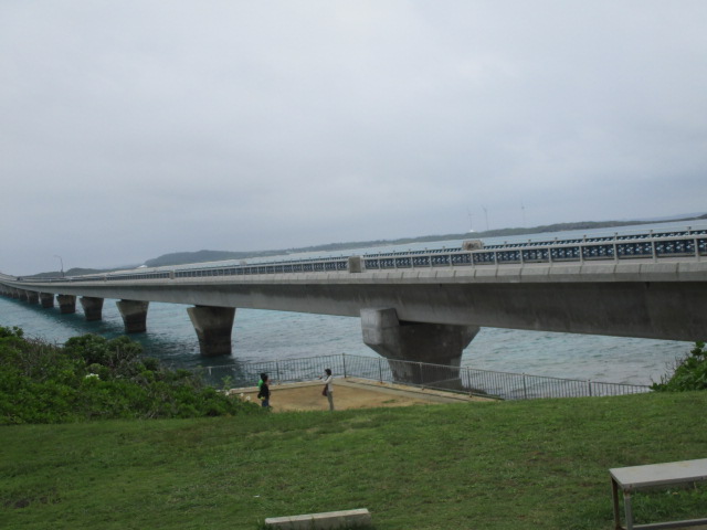 ガイドブックを見ても4トラで調べても宮古島では池間大橋がよい、との事で行き方を調べたら、バスだと空港から乗り換えないといけないし、本数が少ない、歩く距離も時間もかかり無理。で、タクシーで行きました。タクシーで先に池間大橋、それからタクシーの運転手さん絶賛の伊良部大橋です。池間大橋はまっすぐで周りの海がとても綺麗です。