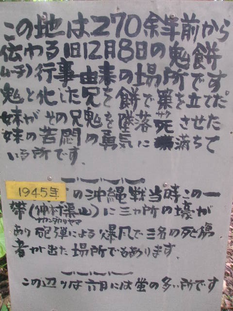 大アカギがあることで有名になっている、金城石畳道の脇から東側に少し進んだ所にある御嶽です。拝所となっている所は主に二か所ありますが、とても神聖な雰囲気で、昔から地元の方に大切にされてきた様子が感じられます。勿論今も尚現役の”宗教施設”ですので、大アカギ目的で訪問した際も、静かに過ごして近隣にお住いの方にご迷惑をおかけしないように配慮したい場所だと思います。