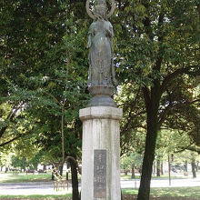 平和記念公園の西側エリアの一画にあって、本川橋に近い場所にこちらの銅像は有ります。この銅像自体は、現在平和記念公園になっている、旧中島本町町民慰霊碑であり、原爆投下前までは広島の繁華街として、かなりの賑わいがあった場所で、原爆投下により、住民の殆どは亡くなり、生存者も移転を余儀なくされた中で、昭和32年に町内の亡くなられた方々の慰霊のために設置された銅像です。宗教色を排除した観音像ということで芸術的銅像として、設置が許可されたものです。穏やかな表情が印象的です。