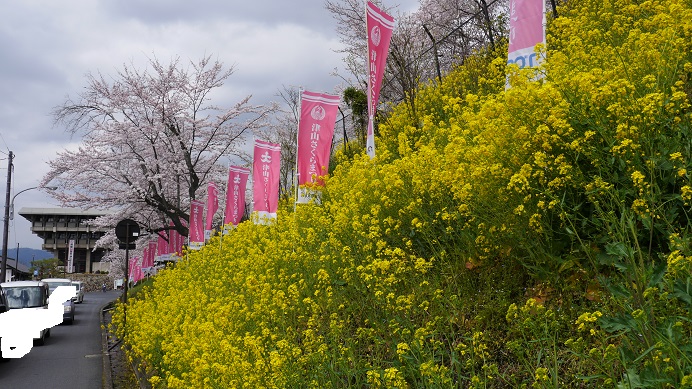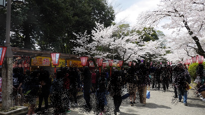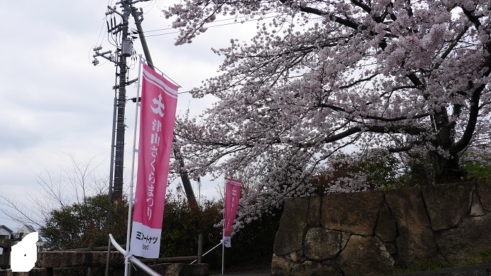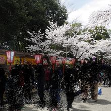 桜の開花する4月に津山城一帯で行われる祭り。城跡のある山一帯に植えられた桜は満開の時期にはたいへんきれいで、一面の桜を満喫することができた。麓では左右に露店が並び、このあたりが最も人込みでにぎわっていた。