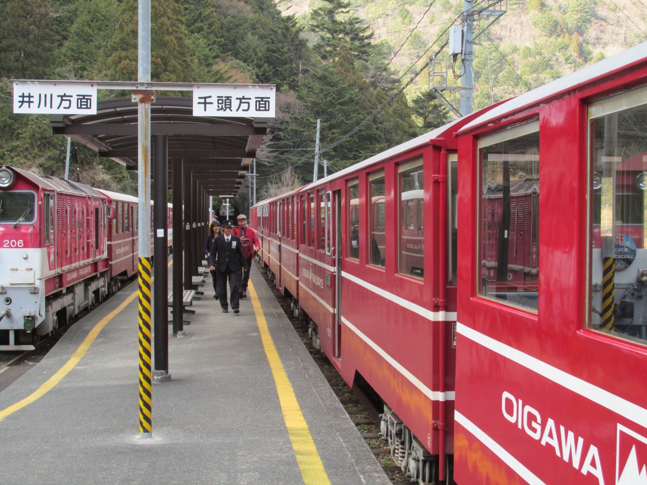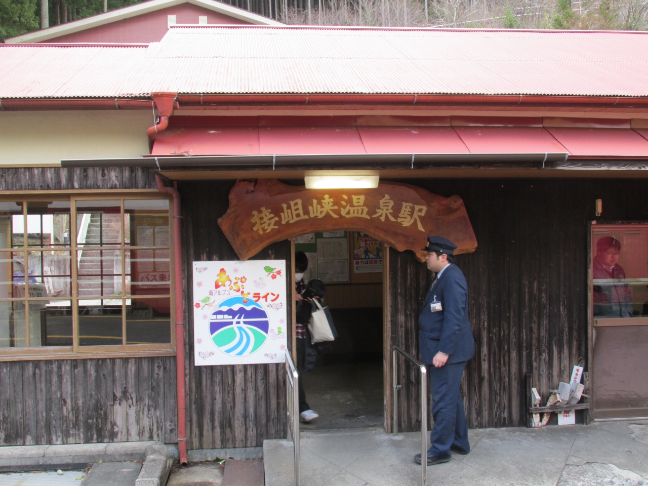 この駅で降りる目的はほとんどの方が温泉だと思います。あるいは列車に乗るためだけか。温泉宿は3つ。日帰りの温泉会館が一つ。それから資料館やまびこ。列車は一時間に一本。今現在千頭から出発の列車はこの駅が終点で、千頭に戻る終電は16時30分です。お気を付けください