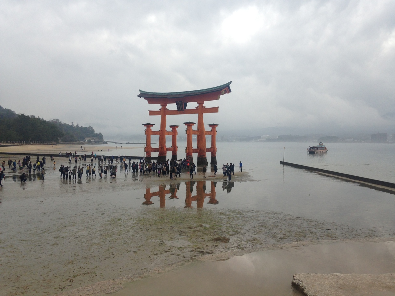 鳥居は干潮時は鳥居の下をくぐれます。満潮時の方が綺麗です。