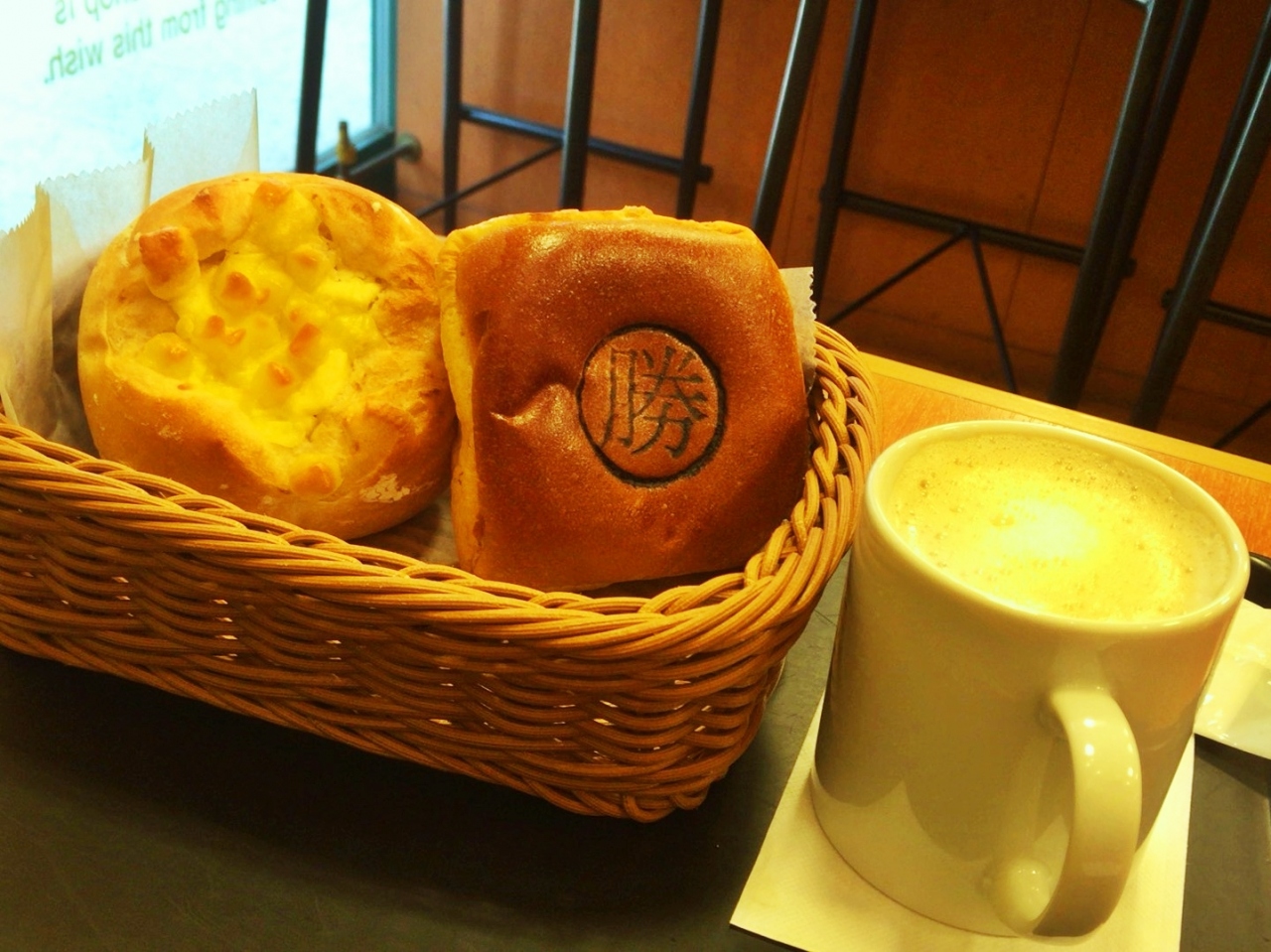 勝田餡パンは、パン表面にゲン担ぎの勝の文字が焼印してあり、その中身も粒餡と生クリームでなかなか美味しい。