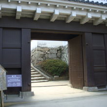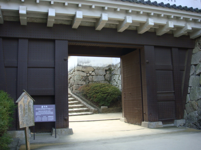 現在岡山城本丸跡に残っている門は不明門とこの廊下門の二つです。昭和41年に天守閣と同時の再建のため比較的新しいです。この廊下門の上は本段御殿に住む藩主が中の段の表書院に降りる廊下になっており、この門の由来となっています。やはり鉄筋コンクリート造りの復元物のため歴史の重みは感じません。