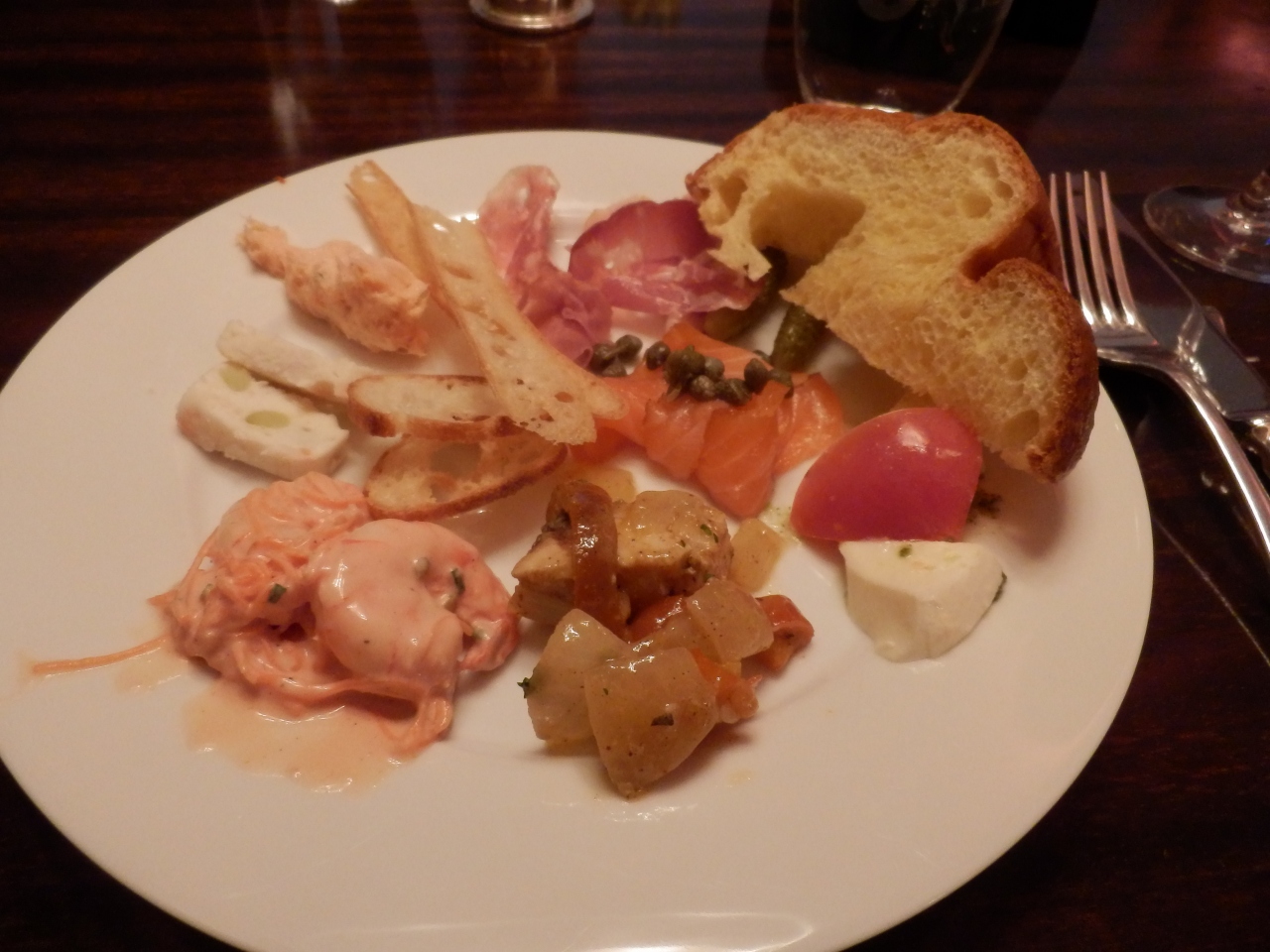 メニューはワインに合うようなビストロ料理で、最初は思っていたよりも種類が少ない気がしたのですが、いざ食べてみたら、少量ずつ全種類が食べられましたので、ちょうど良い量に思えました。