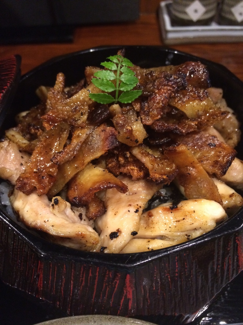 焼いた鶏肉が載ったお櫃のごはんをお茶碗に移し、4回に分けていただきます。1.そのまま。2.薬味をつけて。(テーブルに7種、御膳に3種の薬味)3.温泉たまごで。(個人的にはこれが爆発的にうまかった)4.水炊きスープを掛けて(水炊き好きな私と連れでしたが、本当に美味しいスープと絶賛)
