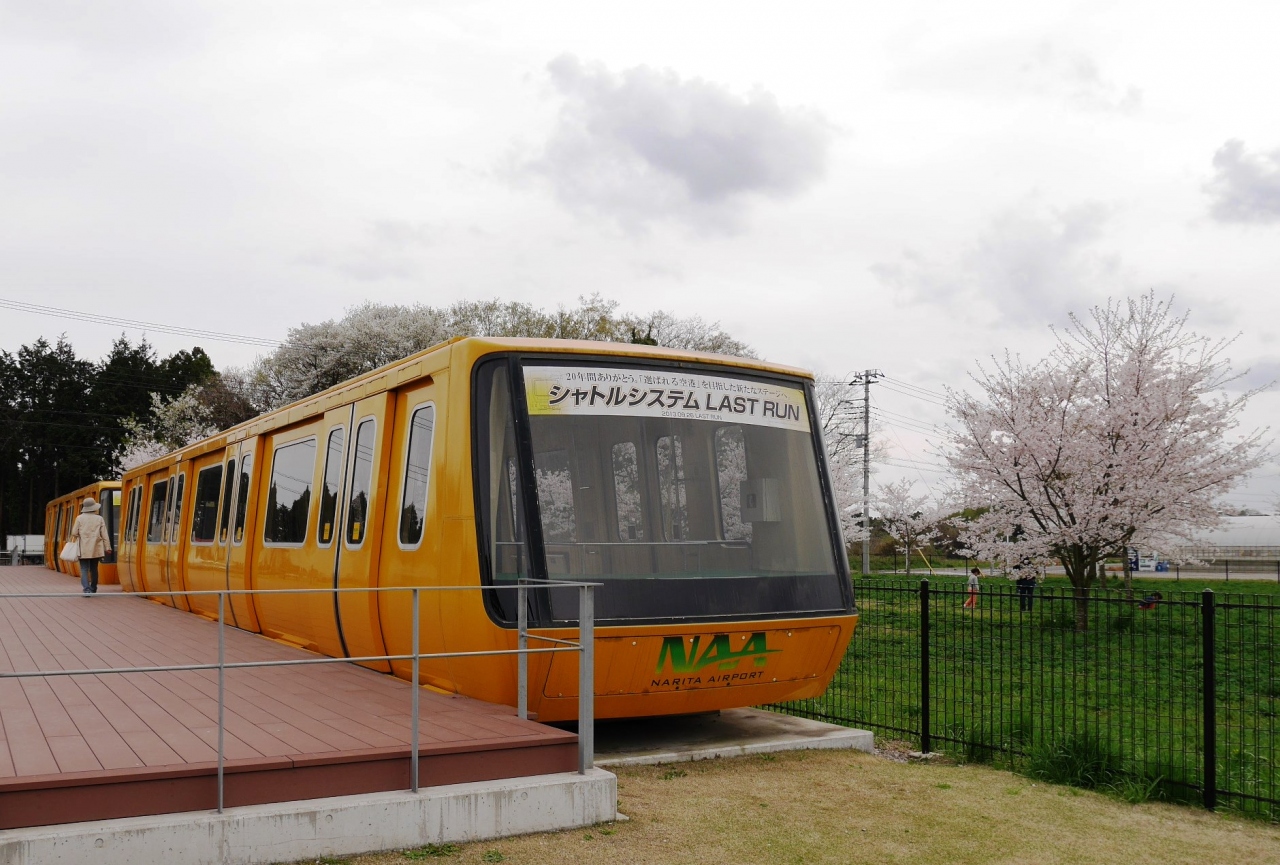 過去に成田空港第二ターミナルで利用されていた、シャトルシステムを展示してあり、車内に入ることができます。
