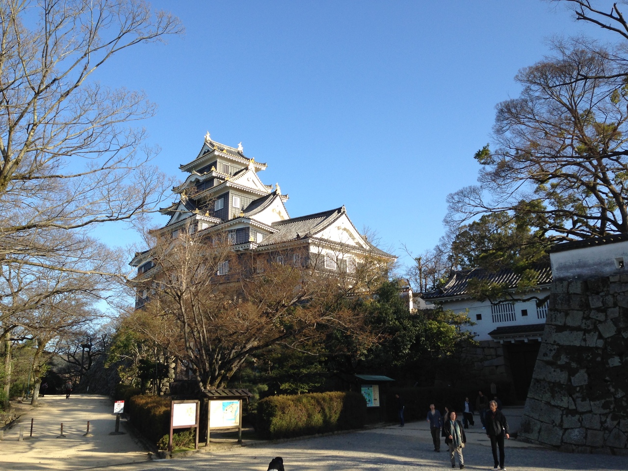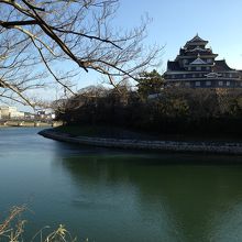 岡山駅より桃太郎大通りを真っ直ぐ進むと岡山城跡。徒歩で約15分程。