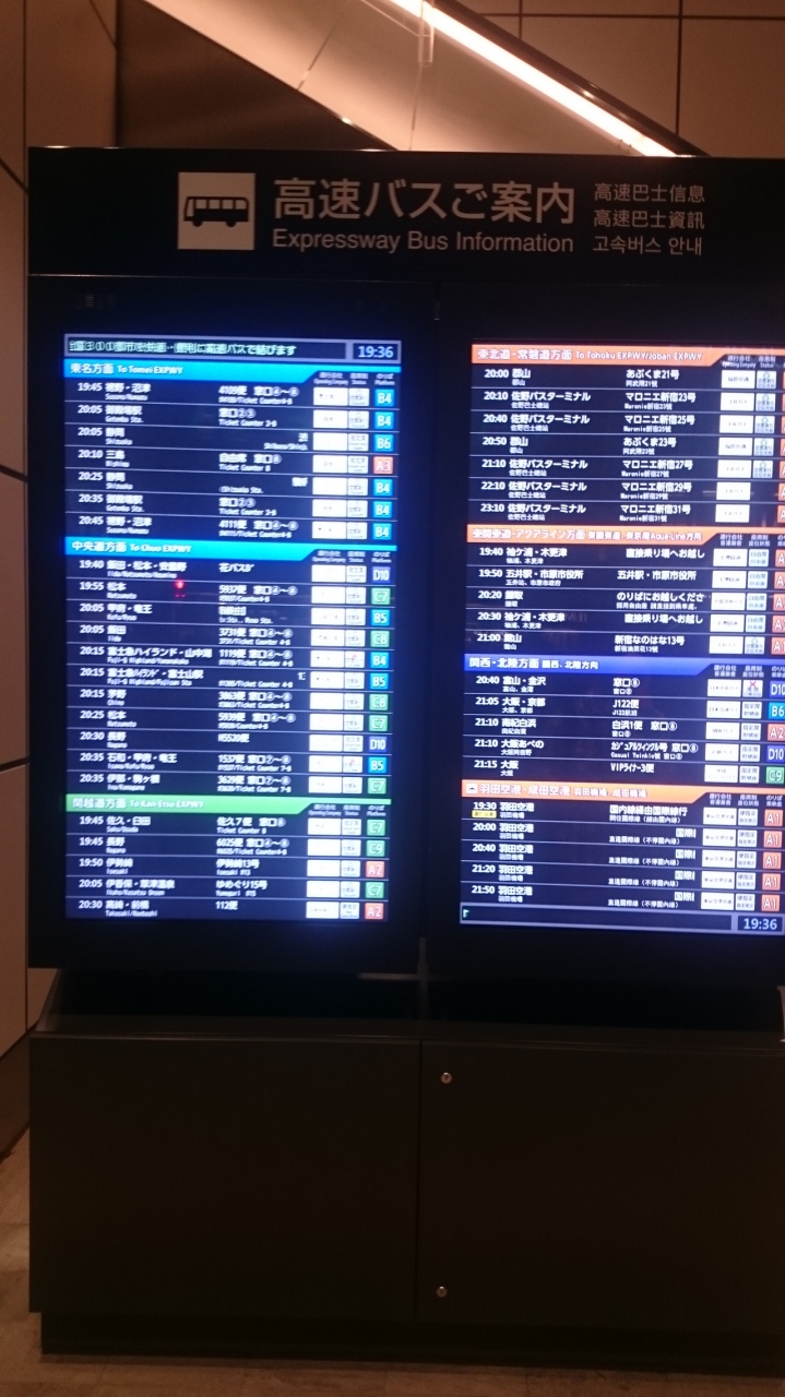 東京駅バスターミナルのように、工夫されたバスストップ。空港のような電光掲示板は最新のバスターミナルという印象。お店も豊富で時間つぶしも余裕。ただ、混んでいるのが少し難点。