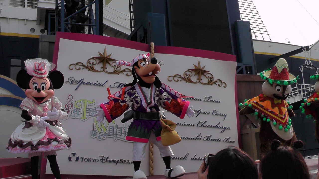 アメリカンウォーターフロントのドッグサイドステージで行われているショーテーブル イズ ウェイティングは映画美女と野獣に出てくるルミエールが世界各地の色々な料理を紹介するショーでドナルドとチップ&デールはメキシコ、グーフィーは日本など色々あり、楽しめるショーです。