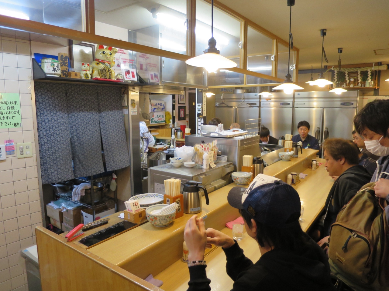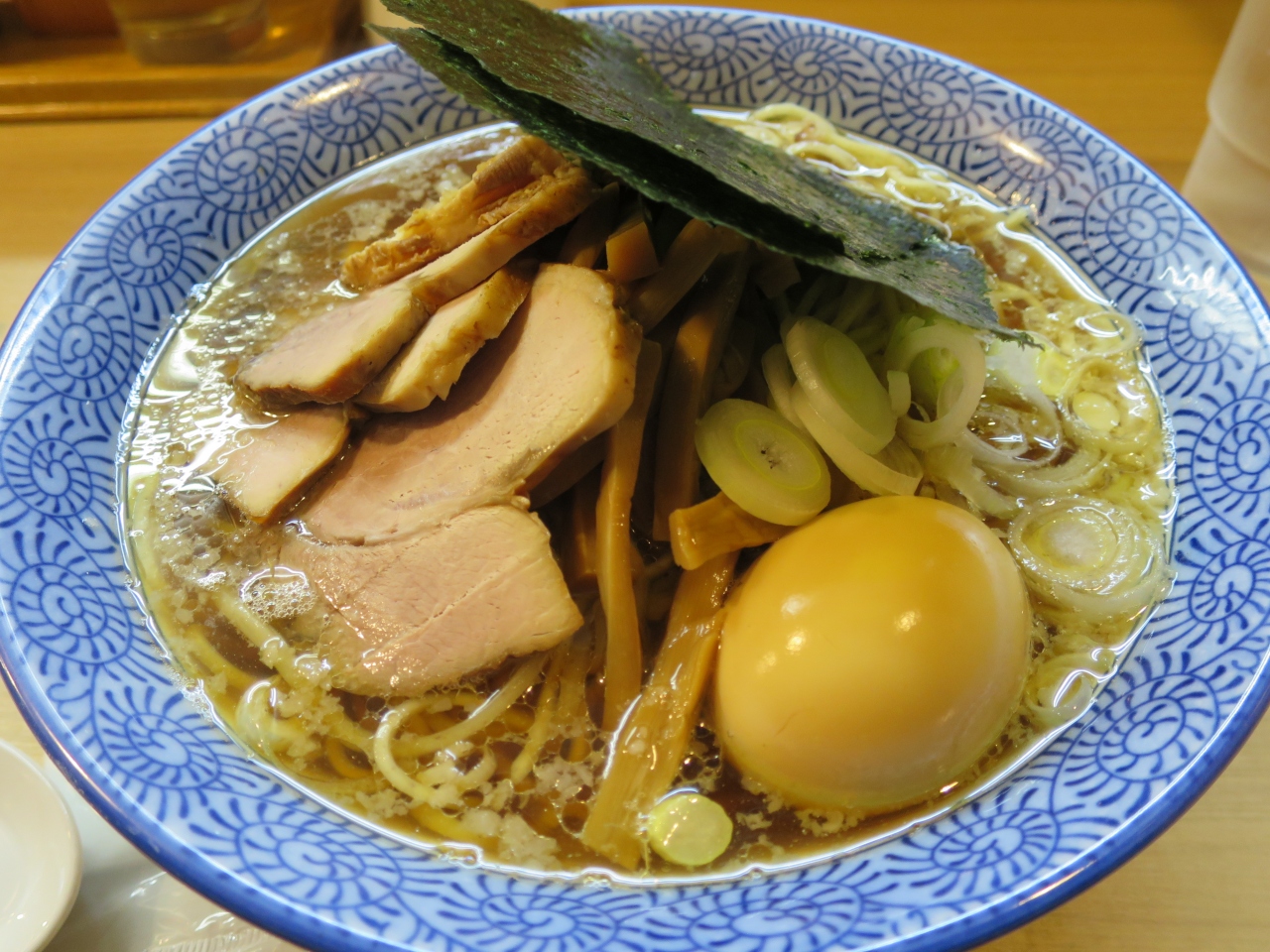 木曜の昼1時過ぎに行っても、8人程並んでいる程の人気店。客席はL字型のカウンター席のみ。特性中華そば970円は卵、チャーシュー、海苔が乗る豪華版。煮干で取ったスープがとても美味しくスープを残さず戴いてしまうほど。しかし、そのあと喉が渇き、結構しょっぱかったのかなと思いました。