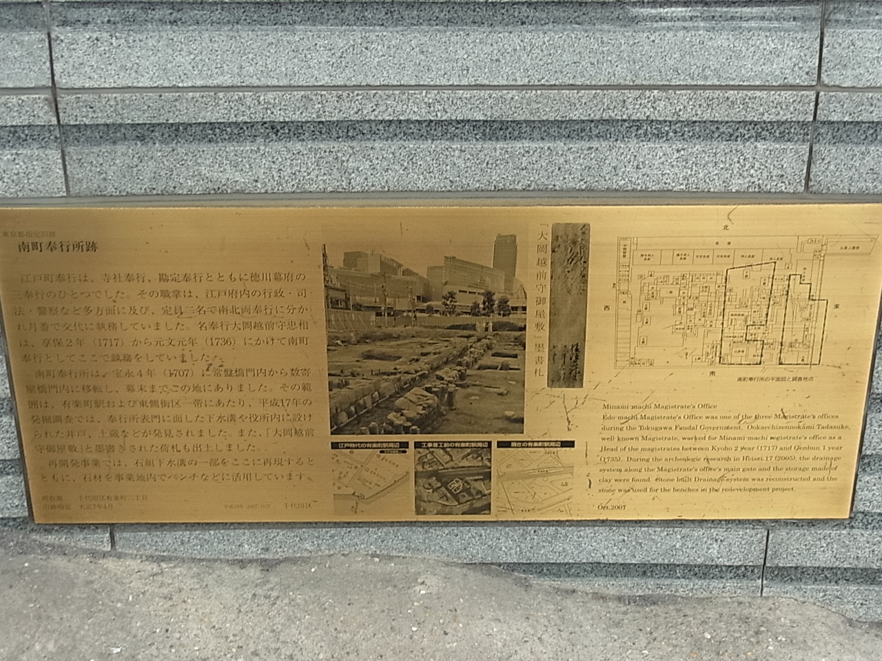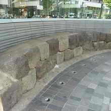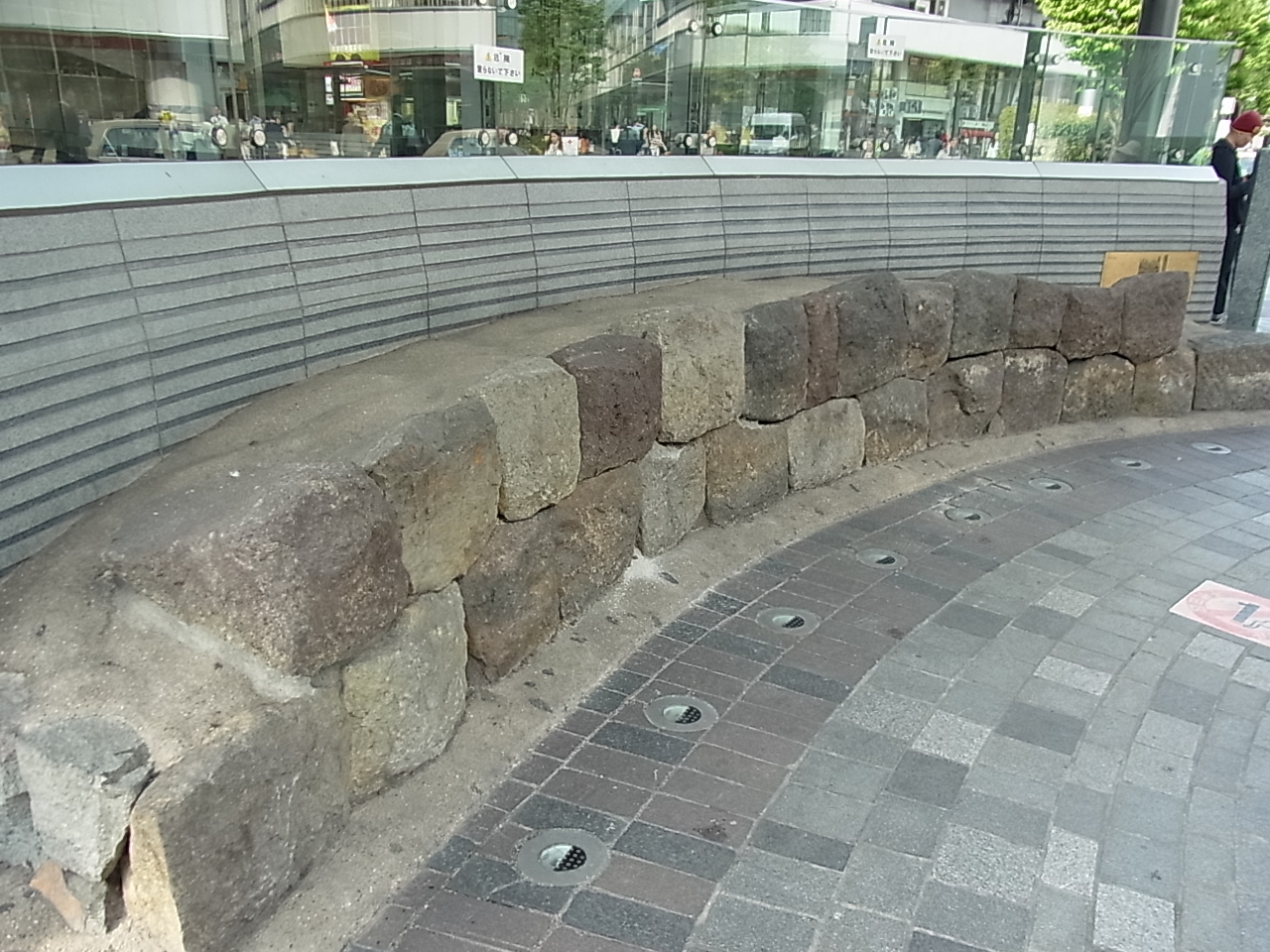 JR有楽町駅の中央口からマルイ方向に行くと、地下に行くエスカレーターがあり、その裏側にあります。少しばかりの石垣が残されていますが、全く気づいてなかった。待ち合わせの人達が石垣に座っていて、まさかコレが!!と驚くばかりです。