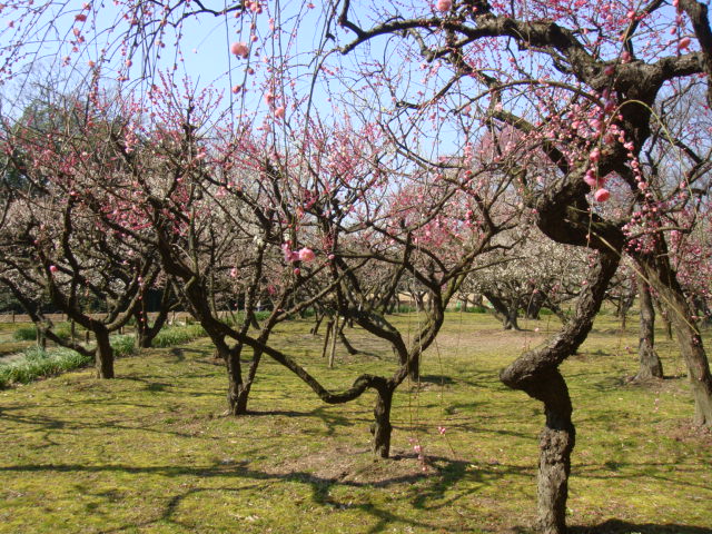 岡山後楽園内にある梅林です。訪れた時は2月中旬でしたので、ちょうど梅の花がほころびだした時期でした。そのためカメラマンの方が大勢訪れており撮影をしていました。こちらの梅林には紅白、一重、八重と約100本の梅の木があり、アマチュアカメラマンには格好の被写体です。