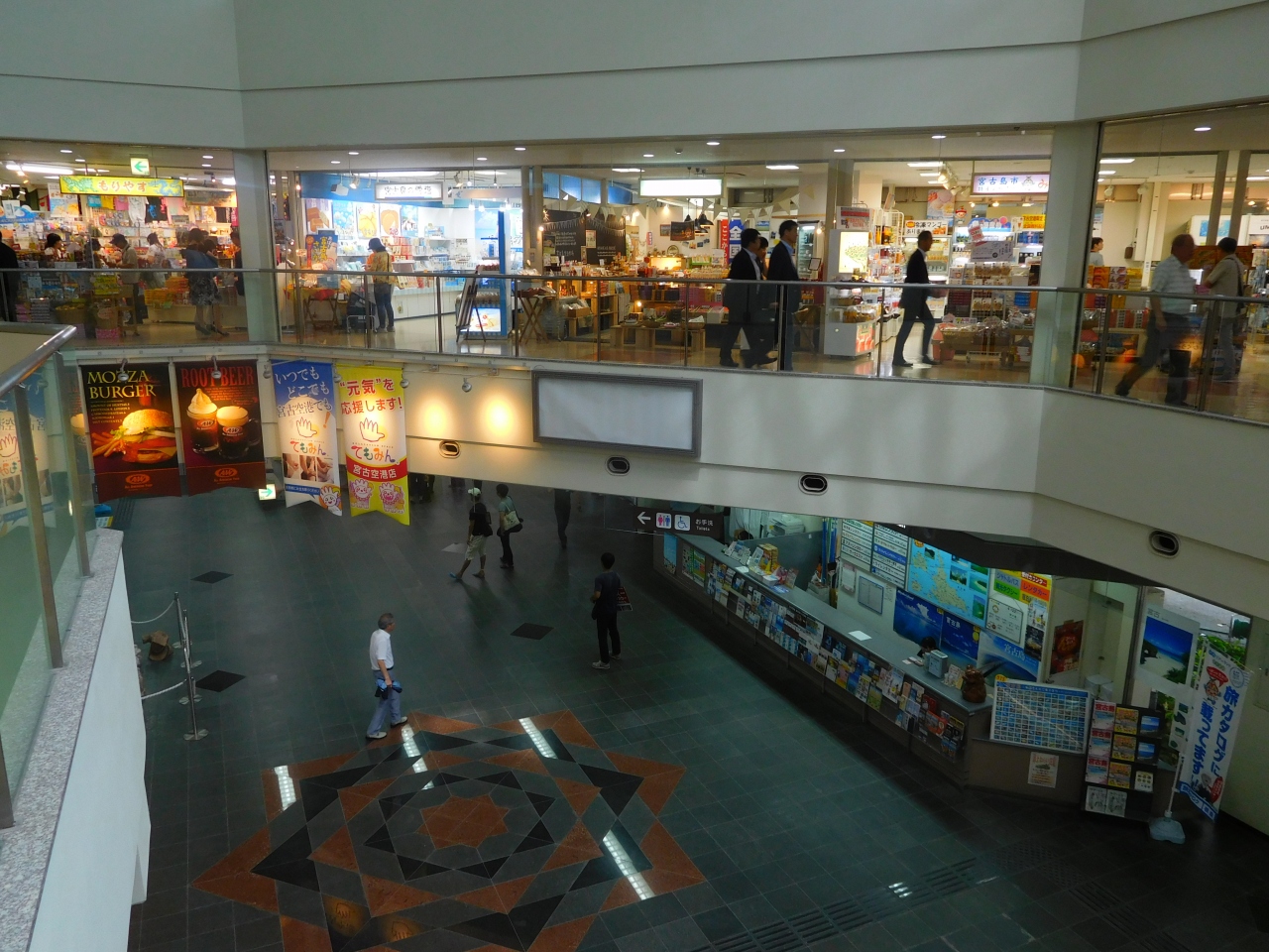 宮古島の中央付近にある空港です。羽田からANAの直行便ができました。小さな島ですから空港もコンパクトです。空港の入口は亜熱帯の花々であふれています。空港内にはおみやげ屋さんも幾つもありますが、沖縄そばなどは町中のマーケットに比べればかなり高かったです。