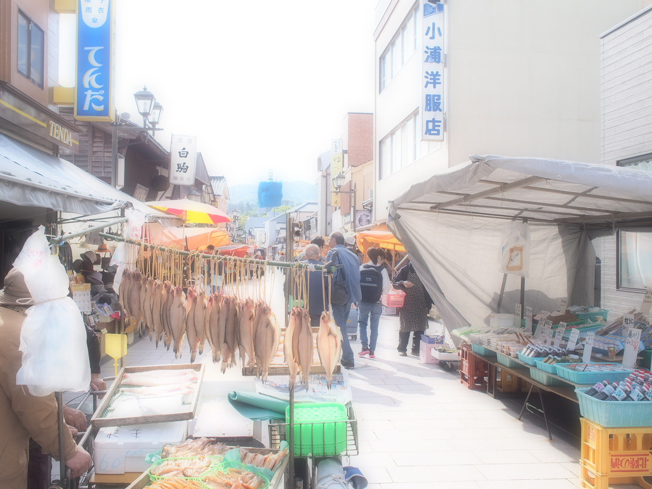朝市には漆器、お箸、干物、野菜のお店が多かったです。