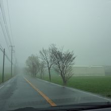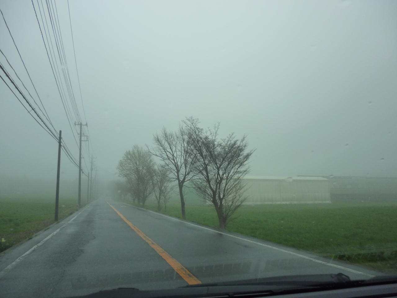 朝霧高原では、雨が降っていました。牧草地で休憩して、富士山の眺めと牛の姿を楽しもうと思っていたのに、残念でした。広い牧草地は、雨の中でも走っていると、のんびりとした感じを味わうことができました。今度来るときは、晴れてほしいです。